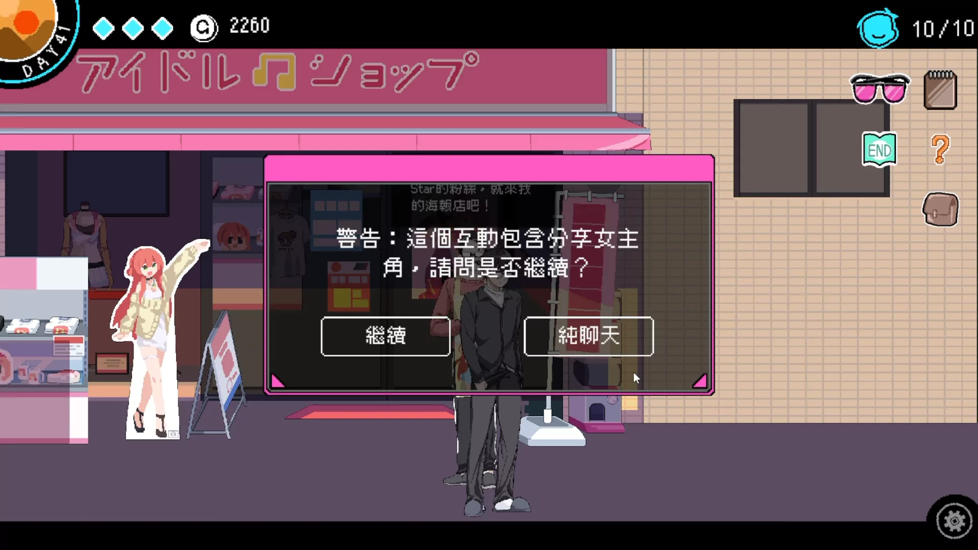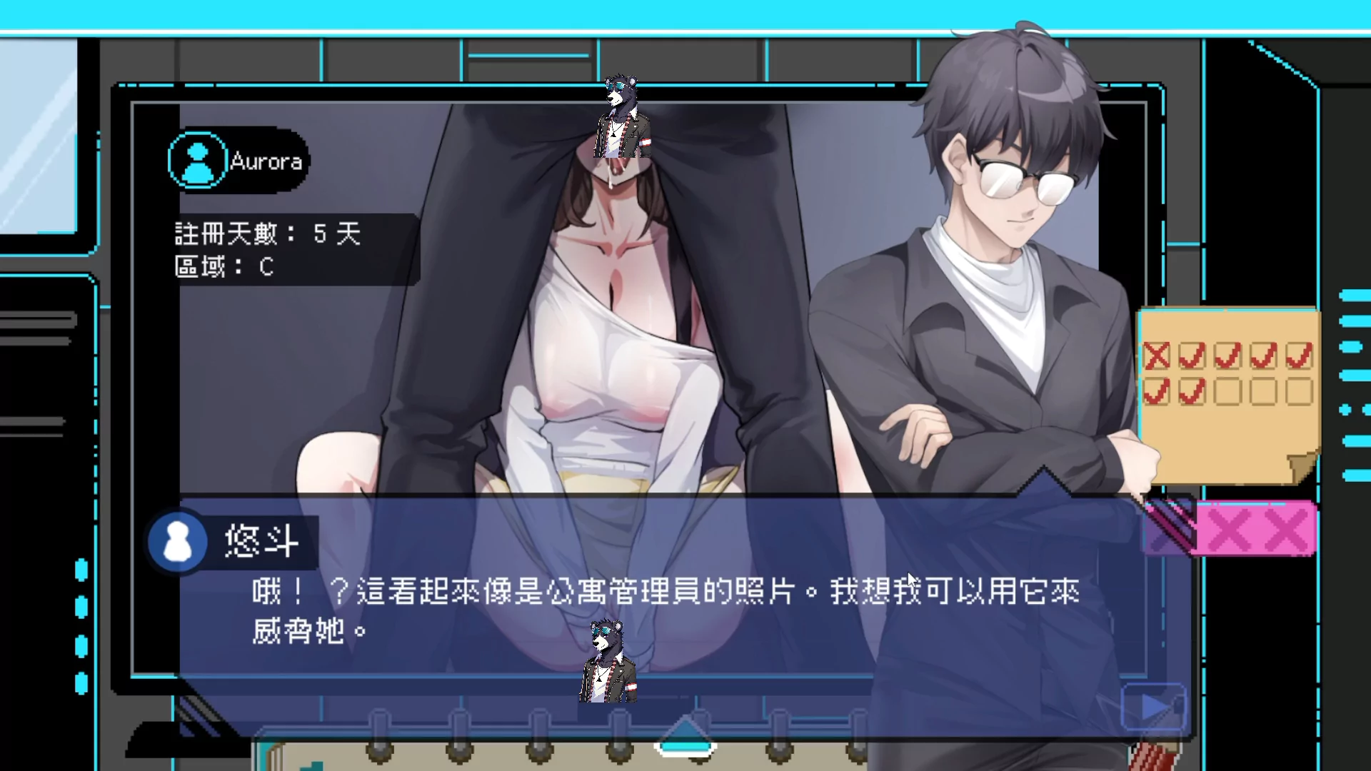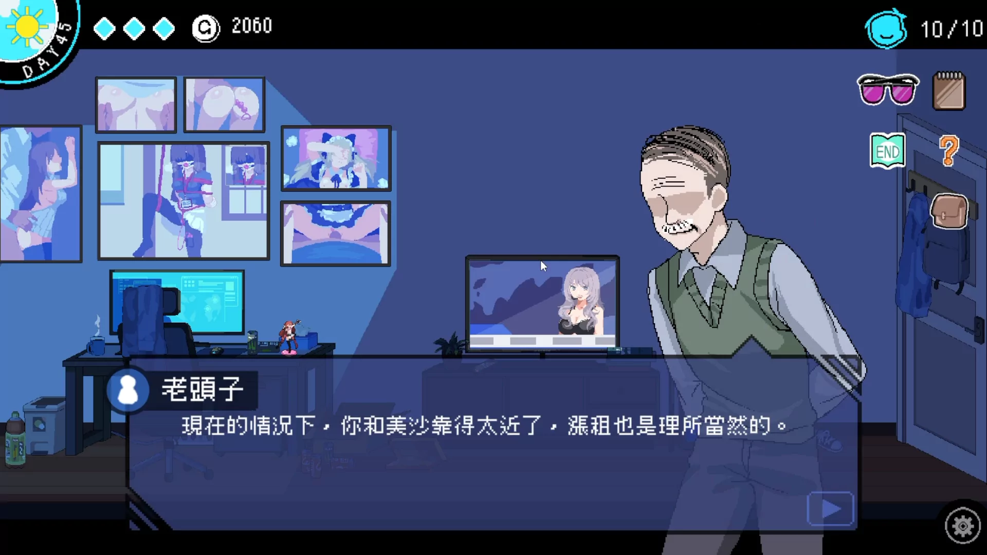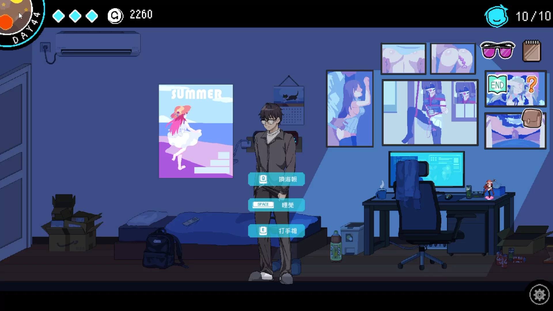 2.「行動點」:打工、色情、部份行為都需要消耗行動點,一旦耗盡則前進到下個時段。