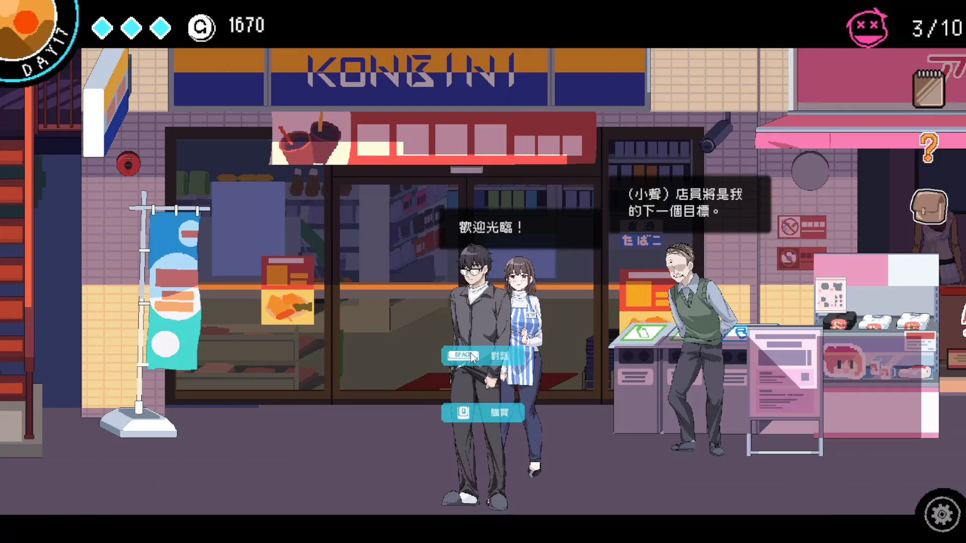 最後是購物的部份,本作能夠購買物品的地方一共有兩個,一個是一樓的便利商店,另一個則是一樓另一側的海報店,便利商店賣的是一些可以協助玩家推進劇情的道具還有一些觸發事件的關鍵物品,海報店賣的則是可以帶給玩家一些增益的道具。