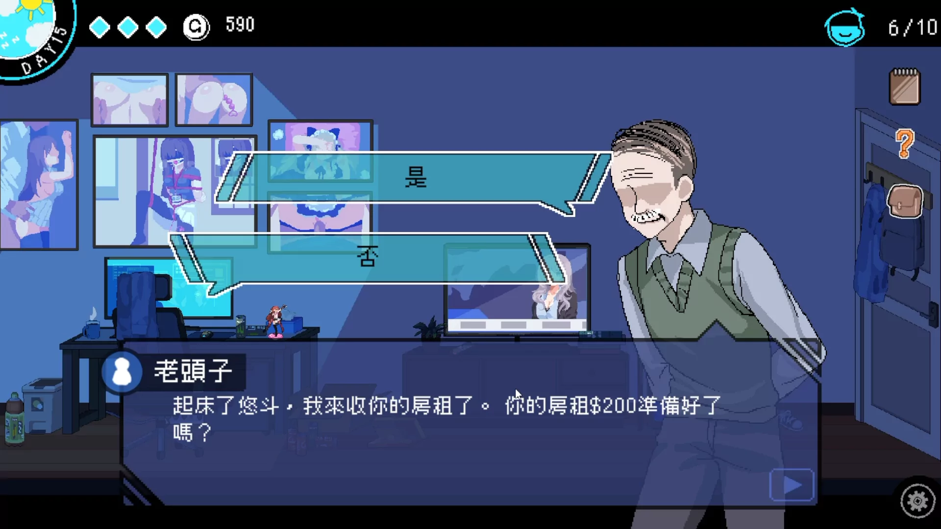這方面作者有兩個小建議,一是記得去海報店購買增加工作報酬或經驗的海報,最高有加到100%的,購入後記得在房間裡更換海報以開啟增益,之後挑選預設高報酬高經驗的任務來解,很快就能湊到足夠通關的金額和經驗了。