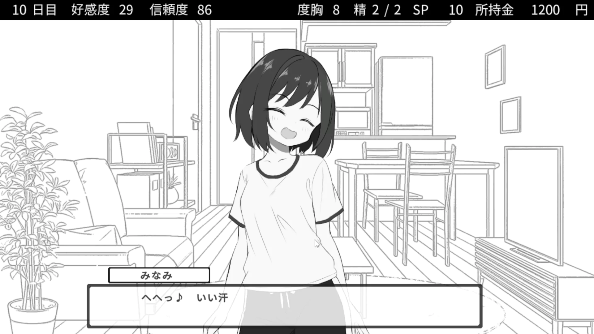 本作是採取日期&行動點制的模擬遊戲,但因為日期本身沒有實質限制,各位可以放寬心地輕鬆遊玩。而一天內則分為白天跟夜晚兩個階段,白天時可以跟女主角對話、鍛鍊身體或是工作賺錢,晚上則是夜襲女主角的時間,而隨著劇情進行,也會解鎖更多的場景跟體位,甚至就連白天也能跟女主角親親熱熱。
