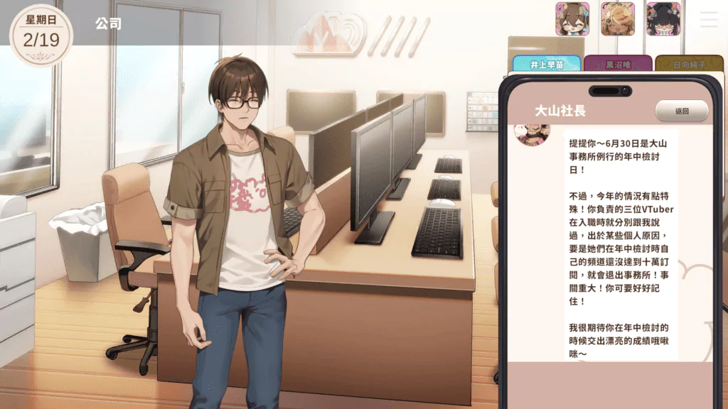 來介紹本作《請成為最能幹的 Vtuber 吧!》主要是扮演經紀人的身分