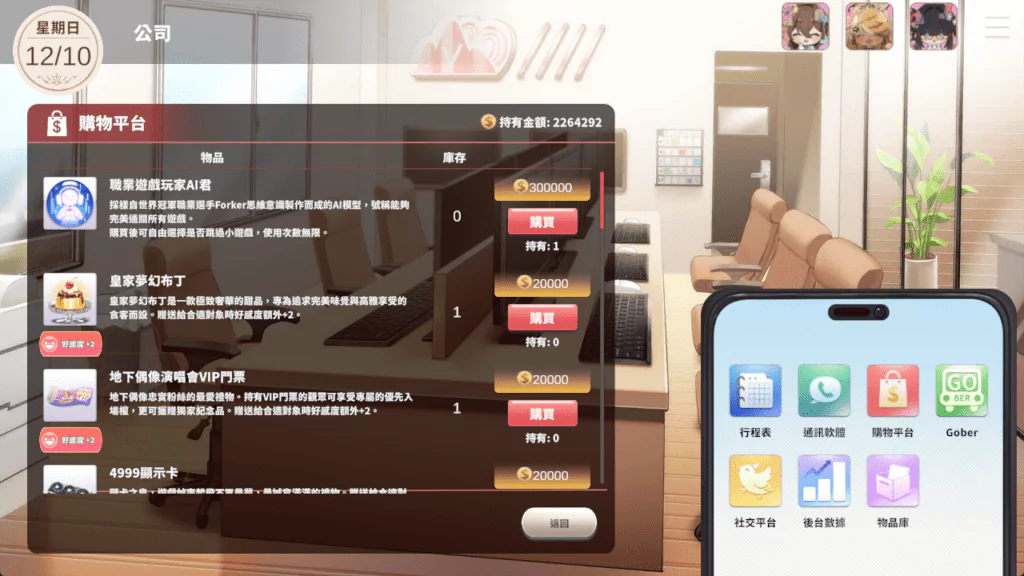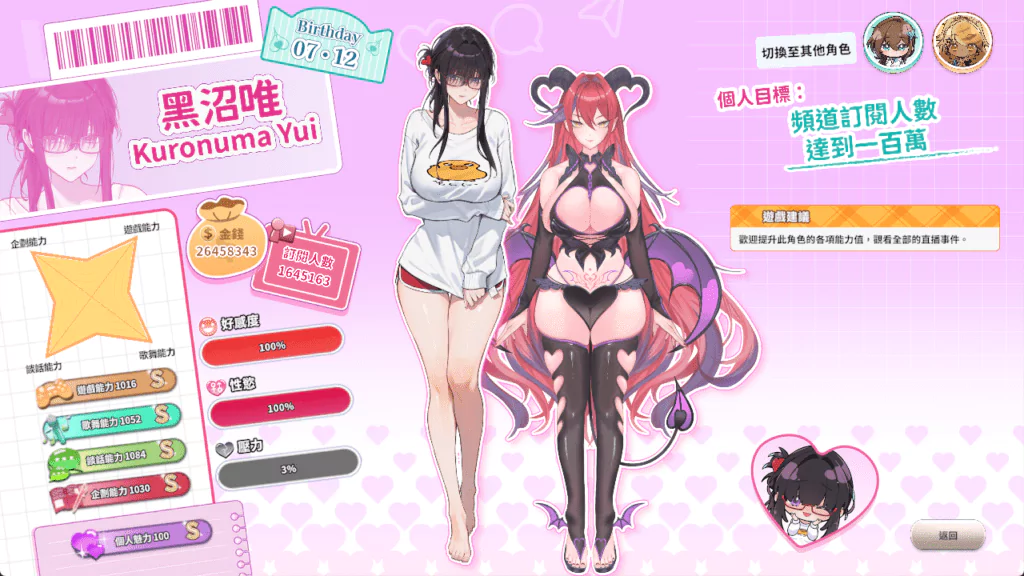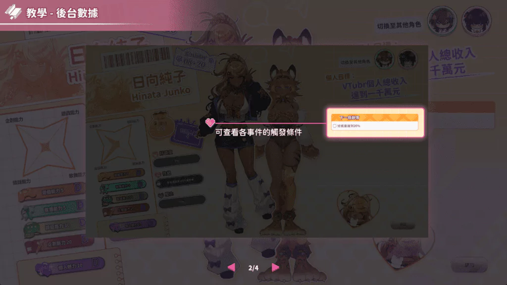 《請成為最能幹的 Vtuber 吧!》遊戲玩法介紹-角色養成小遊戲