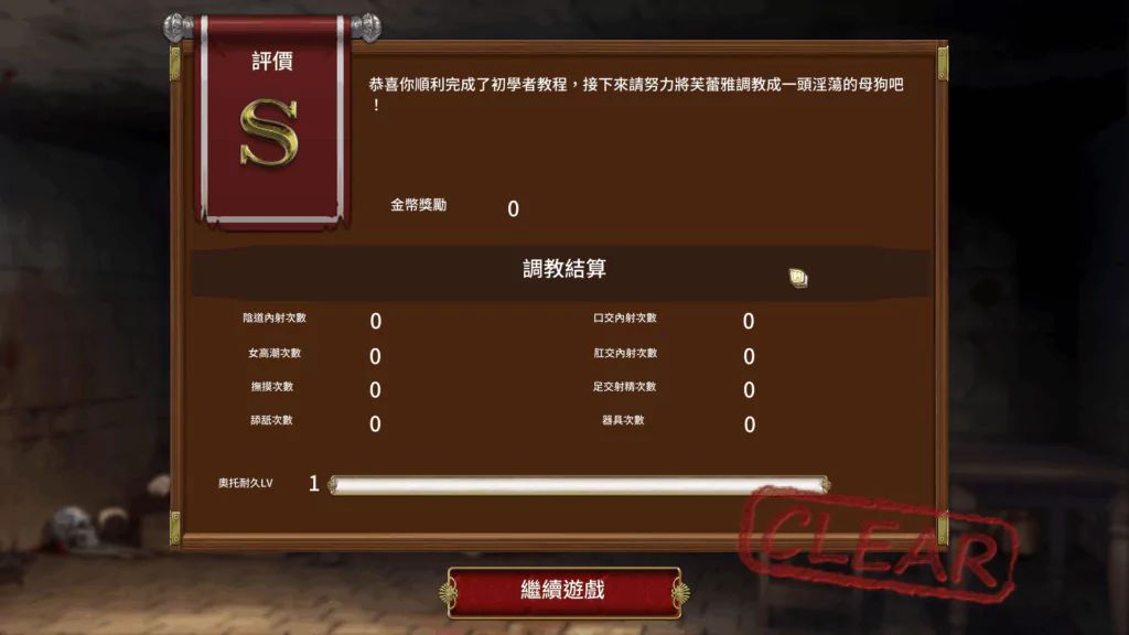 小 Tips:讓女主在調教過程達越多次高潮,調教評分越高, 3 次可拿最高級 S 級評分,後面多潮無益,就是心裡的征服感多一點。