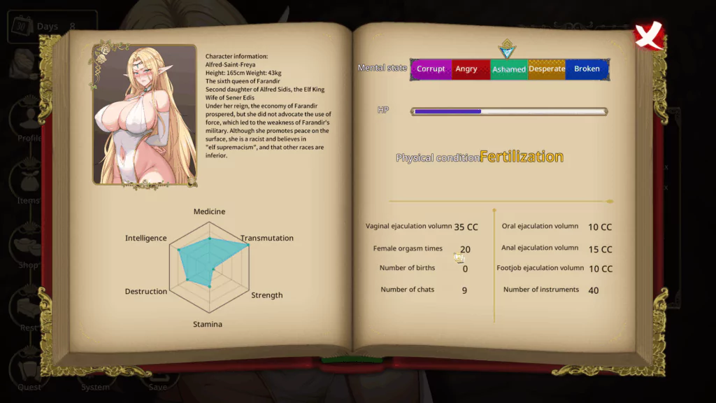 Within 22 in game days you must train the Elf Queen Freya from a proud ruler into a completely obedient fallen elf