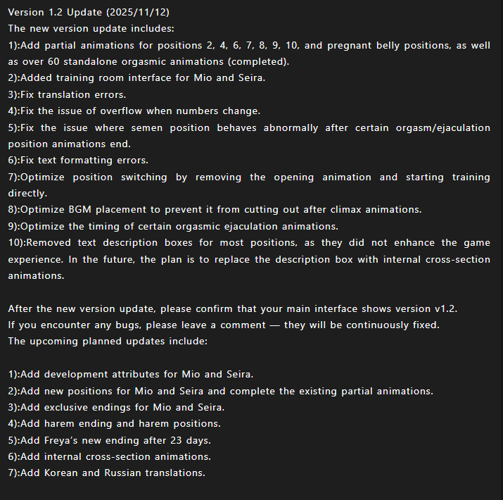 The game includes a variety of adult themed interactions such as multi partner scenes domination training soft monster elements elf related themes and light SM content.
